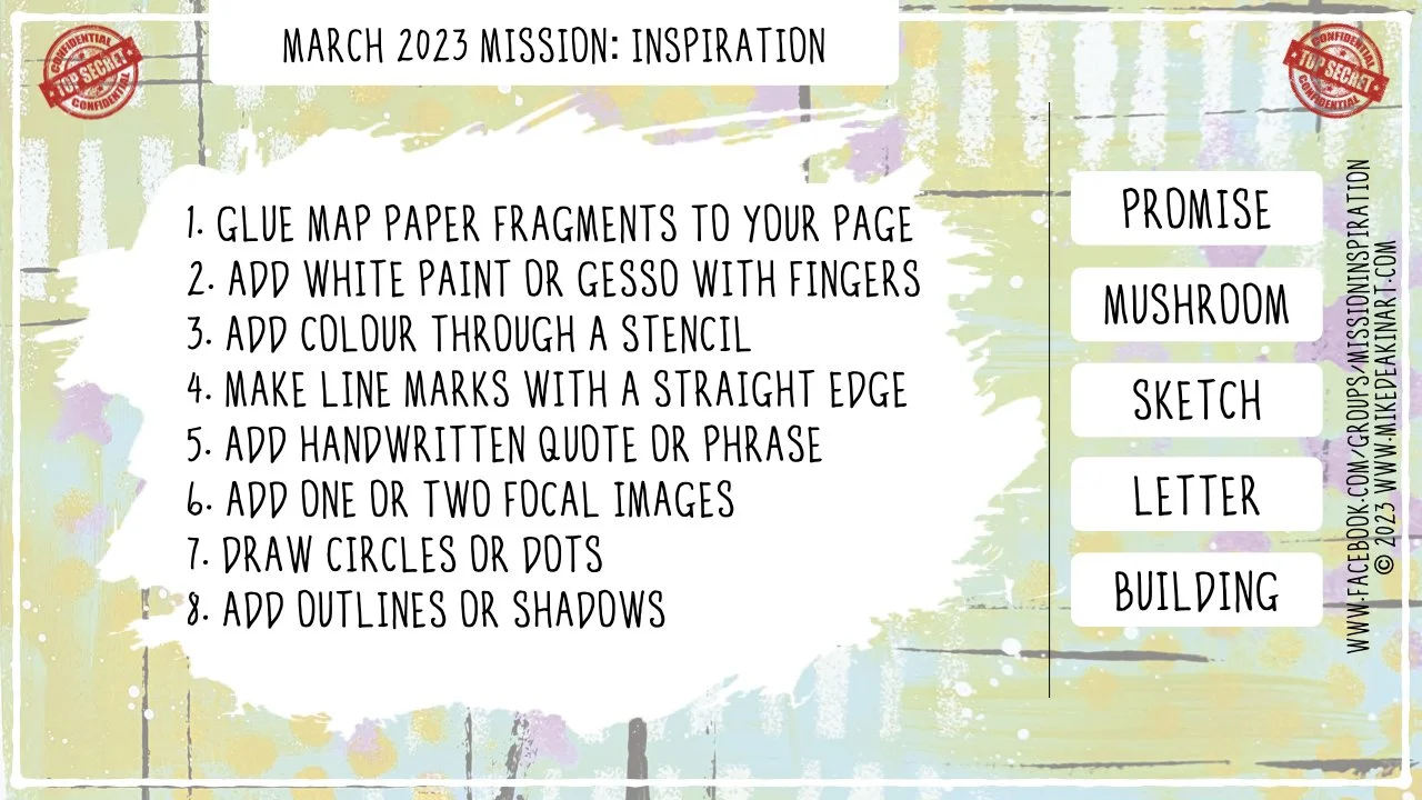 It’s time for another new art challenge over in our Mission: Inspiration Facebook group. The art challenge prompts for March are below.